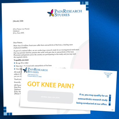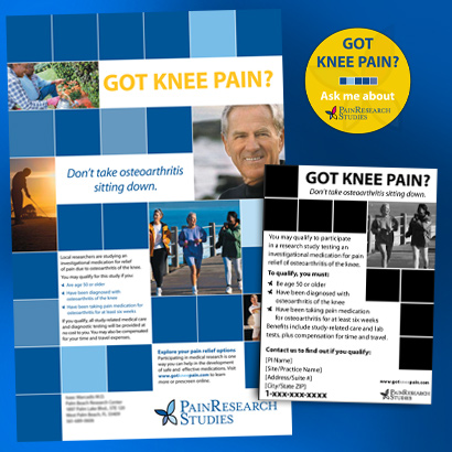 I art directed and designed the logo and 19 print marketing collateral for hospitals involved in the national clinical trial for the pharmaceutical development company POZEN's Got Knee Pain.