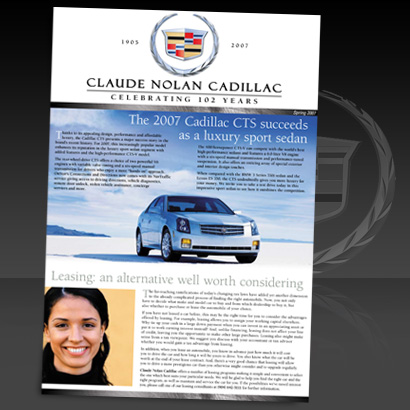 I have created direct mail pieces for a wide-range of automotive manufacturers and dealers, including postcards and newsletters. I find designing in this space allows for maximum creativity and I really appreciate being pushed to explore bold lines, shapes and colors to capture the movement, power and elegance of the various brands.